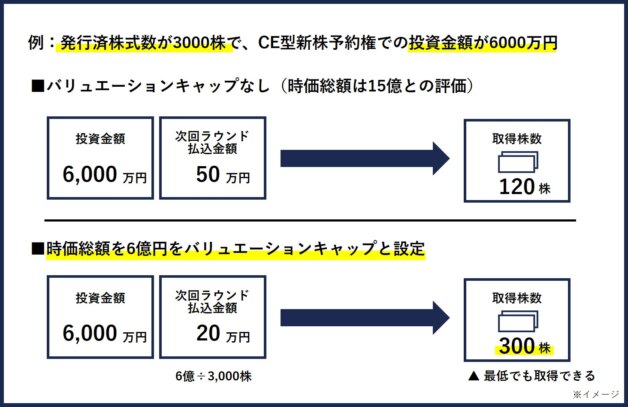 転換価額の上限額=バリュエーションキャップの金額÷発行済株式数[3]