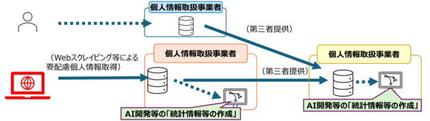 そこで、今回の改正では、統計情報等の作成にのみ利用されることが担保されている場合には、本人の同意を得なくても、個人データの第三者への提供が可能となりました。この統計情報等の作成にはAI開発等も含まれるとされています。