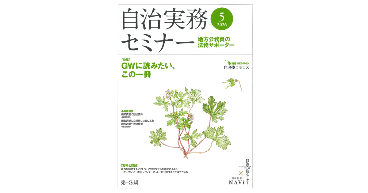 我有弁護士が執筆した記事が『自治実務セミナー 2026年5月号』に掲載されました