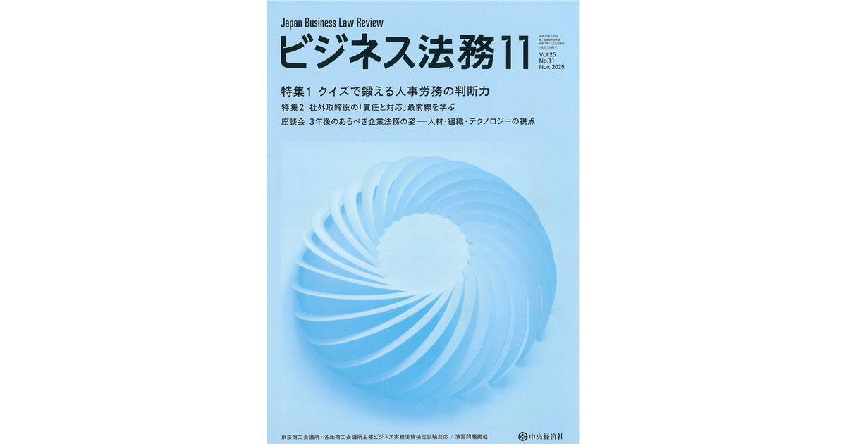 石田弁護士と山下弁護士が執筆した記事が『ビジネス法務 2025年11月号』に掲載されました